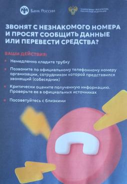 Ввиду возрастания угроз преступных посягательств в обозначенной сфере Генеральной прокуратурой РФ совместно с Банком России разработаны плакаты, в целях информированности населения о действиях лиц, вводящих в заблуждение в целях хищения денежных средств